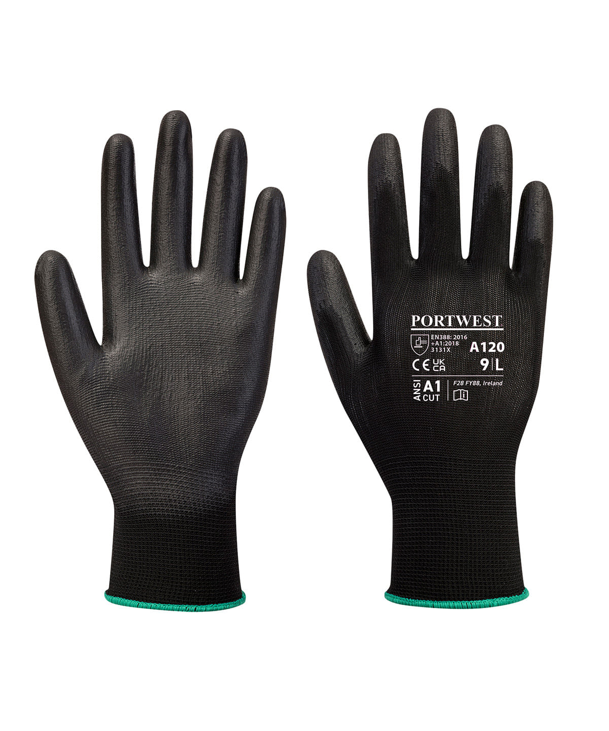 EN388:2016 (2.0.3.1.X) and EN420. The PU palm coated glove is ideal for light duty work. The seamless 13 gauge knitted nylon liner has a palm and finger PU coating providing excellent dexterity.