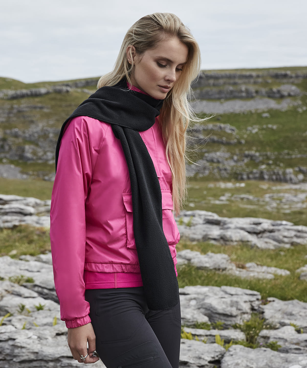 This short pile, lightweight fleece scarf is made from 100% certified recycled polyester. The fabric is soft against the skin and benefits from anti-pilling properties to maintain the brushed finish on both sides. Available in a choice of core colours, each finished with overlocked edges.